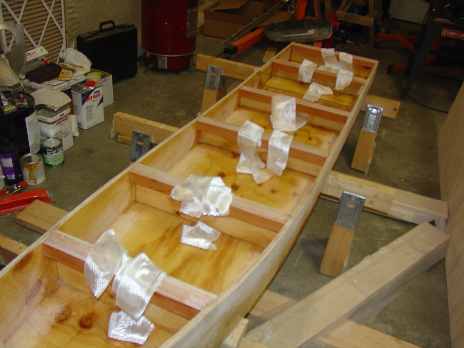 I also added a layer of epoxy to the bottom in the areas that will not be taped to the sides. I left them sanded down, because there will be a little ledge of epoxy next to it when they are taped.